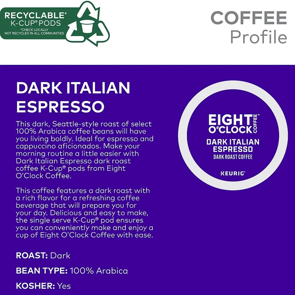 - Customers may receive either Eight O’Clock Coffee Dark Italian Espresso or Dark Italian Roast packaging
