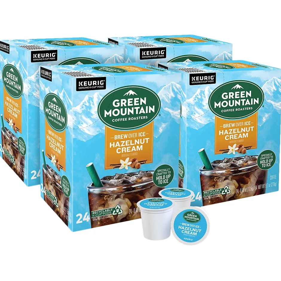 The mountains are a special place. It’s where the Green Mountain Coffee Roasters brand was born. With a rich hazelnut flavor and the sweet, creamy taste of vanilla, the Green Mountain Coffee Roasters iced Hazelnut Cream K-Cup pod is specifically designed to hold up to ice. Green Mountain starts with a specially crafted premium medium roast blend, then adds an extra boost of 100% arabica coffee captured at its peak flavor. All so you can enjoy a cafe-quality, exceptionally rich, wonderfully balanced, and refreshingly full-flavored iced coffee that’s anything but ordinary. This K-Cup pod is compatible with all Keurig single-serve coffee makers, and is filled with the freshest ground coffee that will brew a perfect, great-tasting cup, every time. The Green Mountain Coffee Roasters iced Hazelnut Cream coffee is certified Orthodox Union kosher and committed to being 100% responsibly sourced. That means the coffee the Green Mountain purchases is grown and sold in adherence to a credible sourcing program that aligns with the company’s Responsible Sourcing Guidelines. Simple. Delicious. And recyclable.