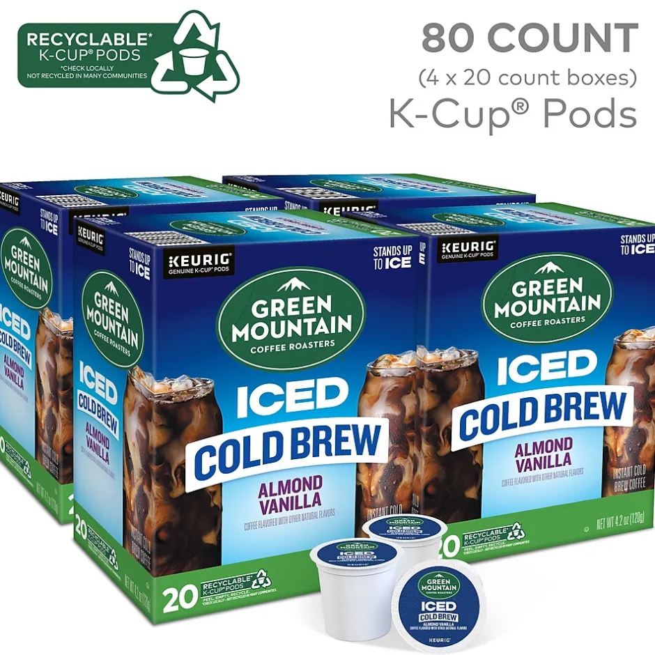 This is cafe-quality cold brew coffee made easy. Green Mountain Coffee Roasters starts with expertly selected 100% arabica coffee beans, steeped for hours, and then captures their peak flavor to infuse every refreshing sip with a rich, smooth taste. The Almond Vanilla Iced Cold Brew coffee is a wonderfully flavorful representation of this remarkable process. Every cup is refreshingly smooth and nutty, with pronounced flavors of buttery caramel and vanilla. Every Green Mountain Coffee Roasters K-Cup pod brews a deliciously great-tasting cup of coffee, every time. That’s because every cup of Green Mountain Coffee Roasters is packed with goodness, reflecting the brand’s commitment to 100% responsibly sourced coffee. This Iced Cold Brew coffee K-Cup pod is compatible with all Keurig single-serve coffee makers. Simple. Delicious. And recyclable.