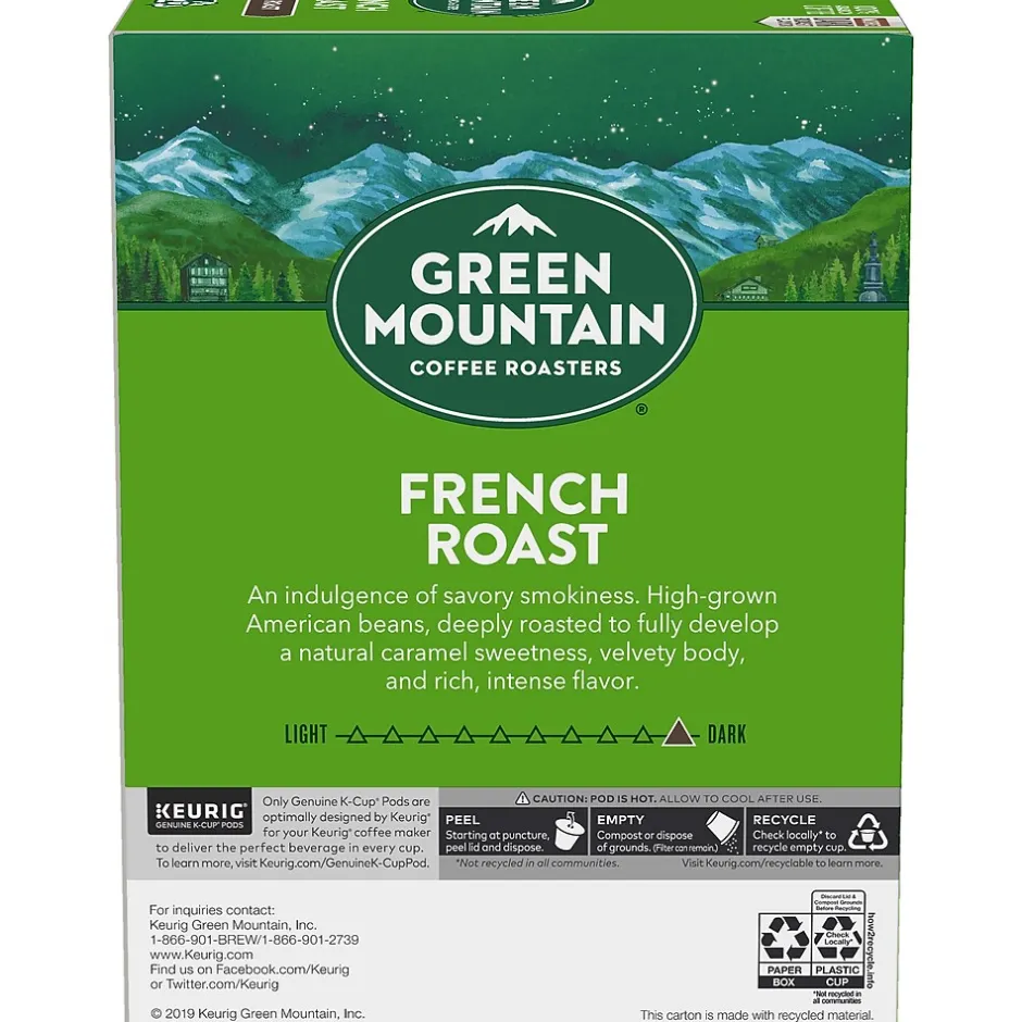Stock the break room with this Keurig K-Cup Green Mountain Coffee Roasters French Roast coffee, which comes in a bulk pack of 24. The individual cups work with Keurig single-serving coffee makers, delivering perfectly brewed cups made to each user’s tastes. These self-contained Keurig K-Cup Green Mountain Coffee Roasters French Roast coffee deliver efficient brewing and quick, simple cleanup, keeping your break room tidier.
