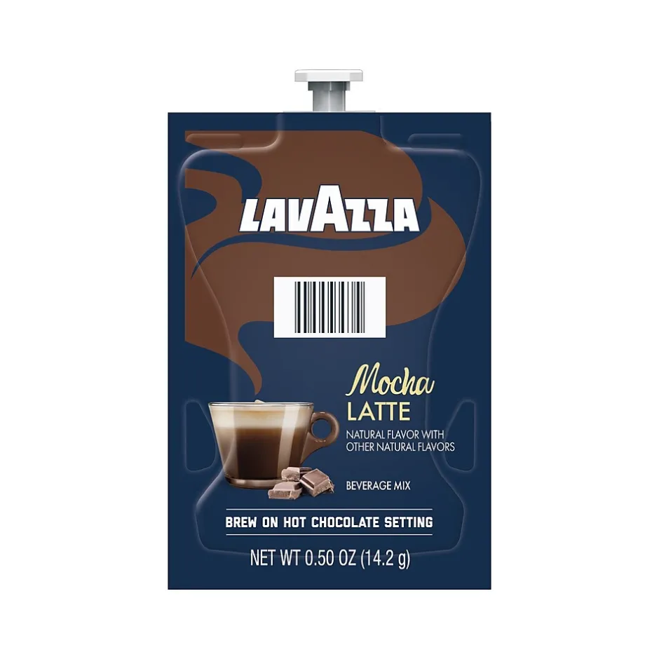 Lavazza brews the Mocha Latte coffee infused with a touch of cocoa and velvety milk froth for a classic, refined latte experience. Each Lavazza Latte offers a specialty cafe-style beverage without having to invest in new equipment. Made with Lavazza coffee, real milk, natural ingredients and sweeteners, these lattes come in the top flavors to be enjoyed all day long.​ Flavia’s jet brewing technology froths the latte from pack to cup in one step, making this easy-to-use single pack latte the simplest way to be your own barista at the office, workplace, or customer lobby.