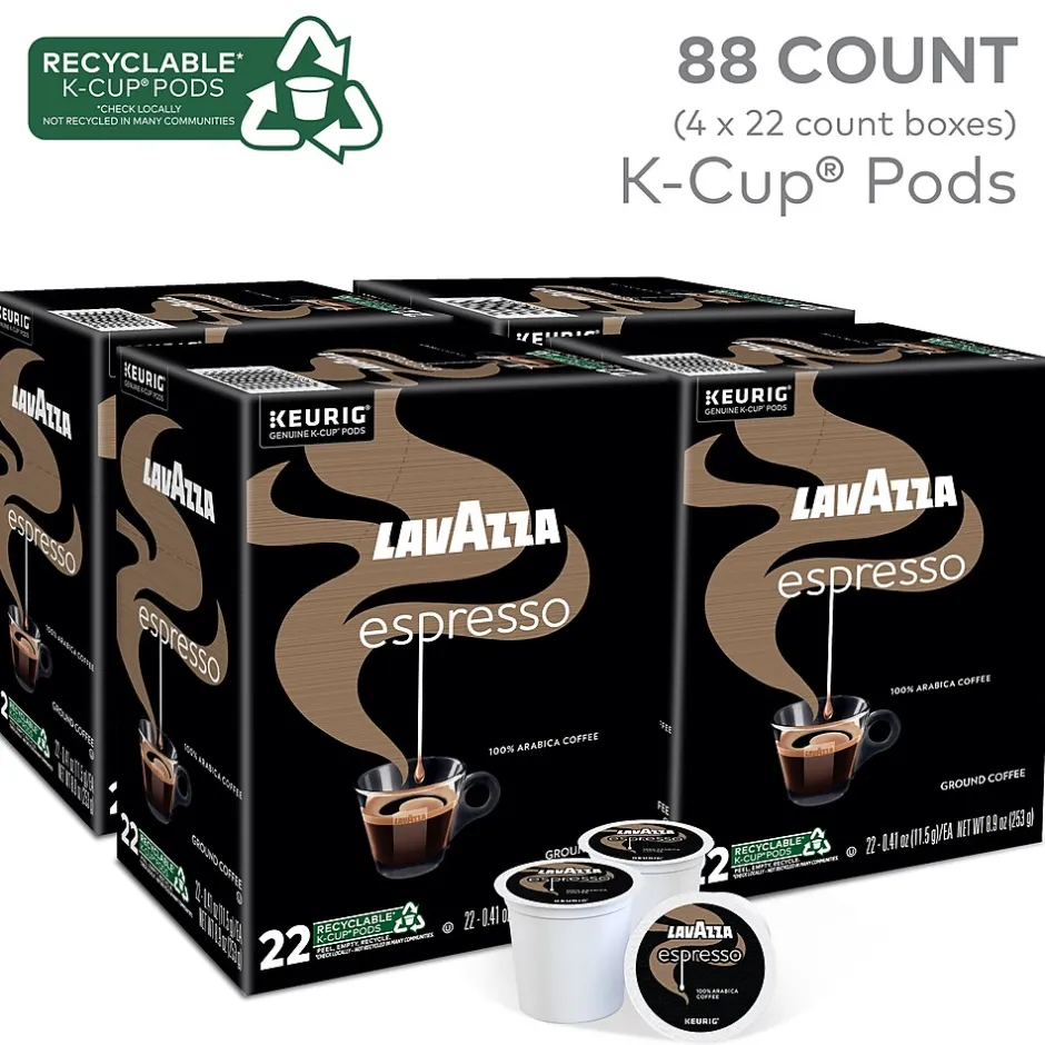 Enjoy a rich, delicious start to each workday with these Espresso Roast coffee pods. The dark-roast beans deliver robust flavor for an indulgent Italian coffee experience, and the single-serving pods mean you don’t have to prep an entire pot to fill your cup. These Keurig K-Cup Lavazza Perfetto espresso coffee pods come in a 88-count box, providing an ample supply for your daily sipping needs.