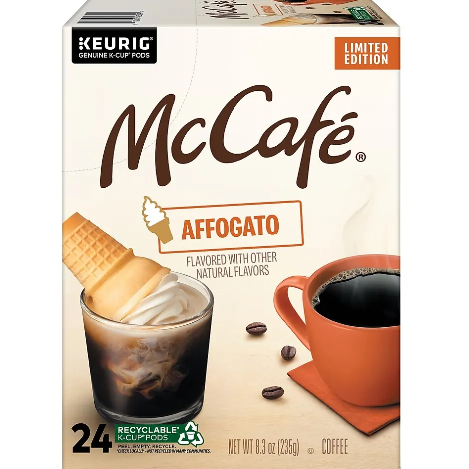 Affogato. Fun to say, even better to drink. Especially when it’s inspired by the delicious DIY pairing of rich, smooth McCafé coffee and the creamy flavor of vanilla soft serve. Available for a limited time only, McCafé Affogato flavored coffee isn’t just your new fall favorite, it’s un-cone-ditional love in every cup. At McCafé, we always start with premium Arabica beans and expertly roast them in a temperature-controlled environment to bring out the best taste, every time. Simply place a McCafé Affogato K-Cup pod into your Keurig coffee maker and enjoy rich, flavorful taste every time you brew. By using 100% Responsibly Sourced coffee in our K-Cup pods, we’re supporting a healthier planet and an improved quality of life for farming communities. So brighten your day with McCafé, a simply delicious coffee that keeps good going. And brew good by the cupful.