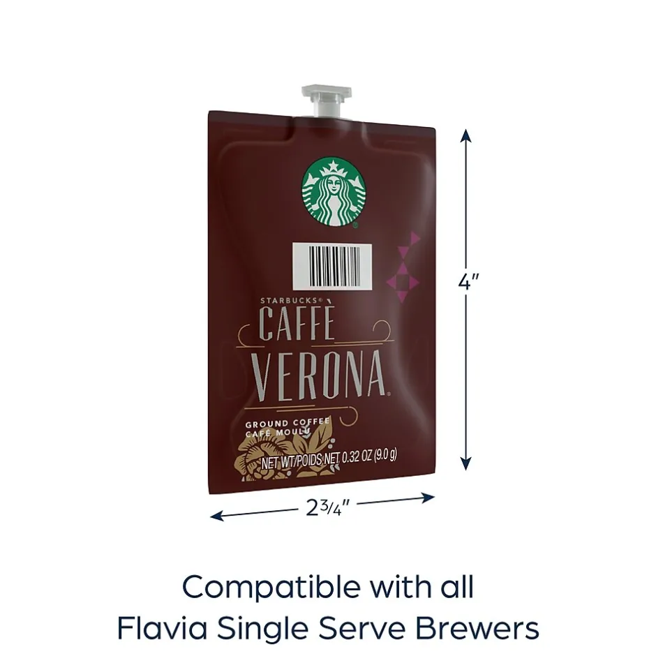 Keep plenty of hot beverages on hand with this carton of 80 Starbucks® Caffe Verona® single serve Freshpacks.