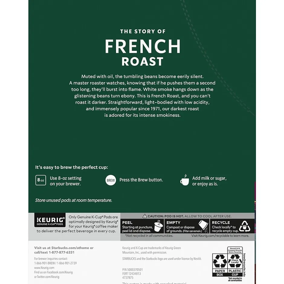 Keurig K-Cups<Starbucks French Roast Coffee Keurig® K-Cup® Pods, Dark Roast, 24/Box (SBK18996)