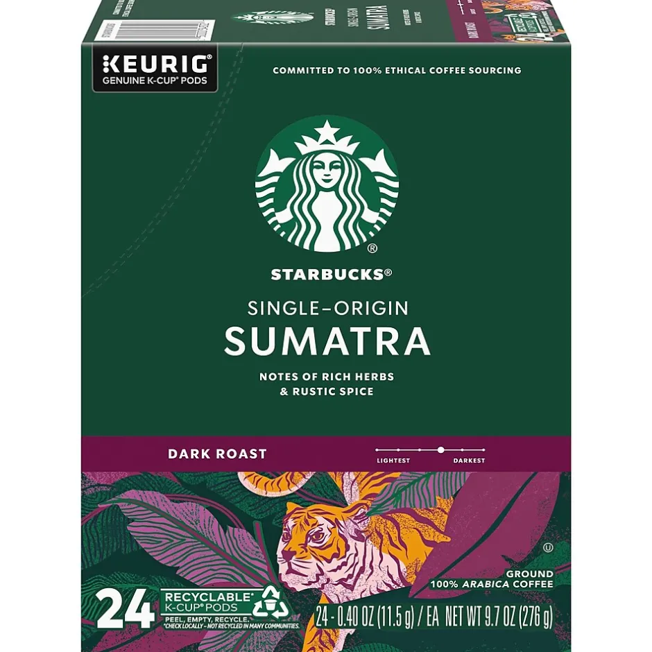 - PREMIUM COFFEE IN A K-CUP—Starbucks delivers exceptional coffee cup after cup with this 24-count K-Cup pod box of Sumatra dark roast coffee for Keurig brewers