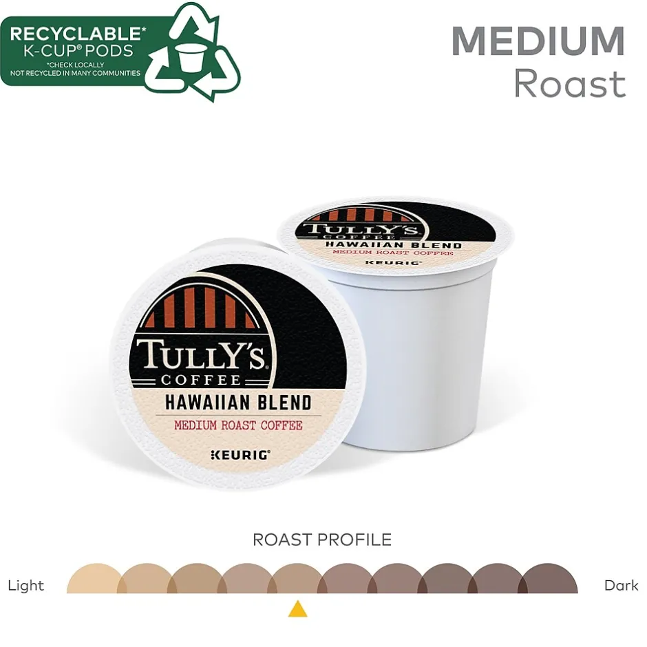 Take a moment each morning to enjoy the mildly sweet and simple taste of this Tully’s Coffee Hawaiian Blend coffee. Each cup fills the room with a delightful, invigorating aroma, while the caffeine provides a jump-start to the morning. These Keurig K-Cup Tully’s Coffee Hawaiian Blend coffee pods make it easy to brew a single cup at a time.