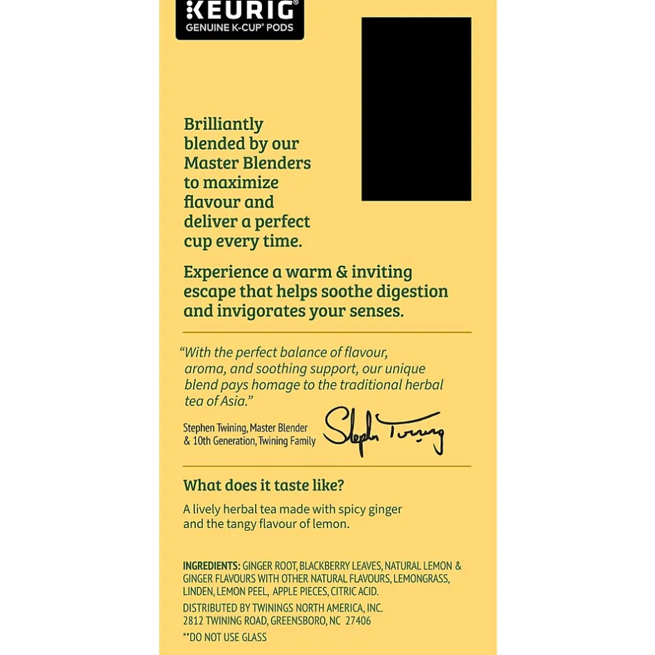 | Single Serve Cup Type Actual manufacturer name for flavor | Lemon & Ginger |