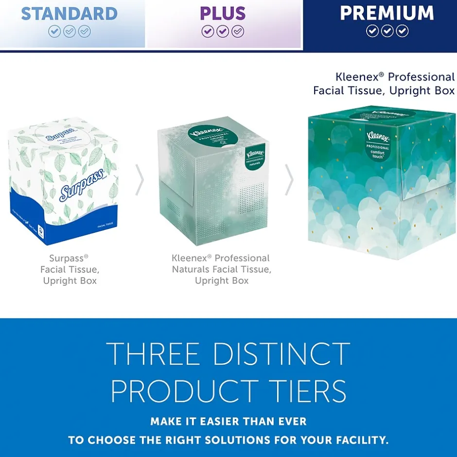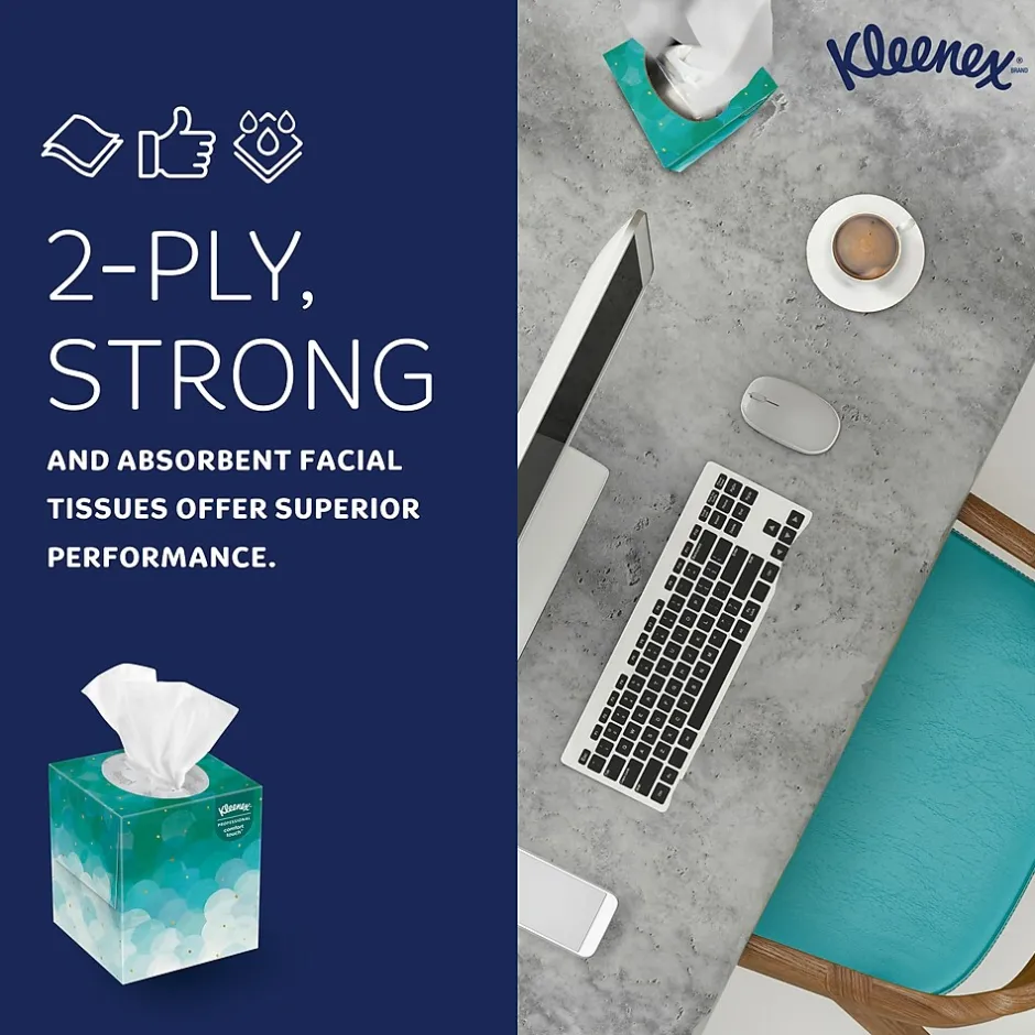- Kleenex® Professional Facial Tissue Boxes, 90 Tissues/Box; 2-Ply; White; Upright Facial Tissue Cube Boxes for Business