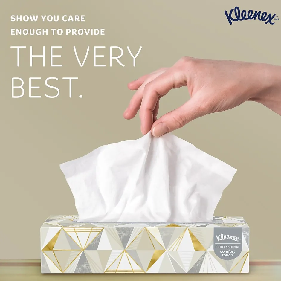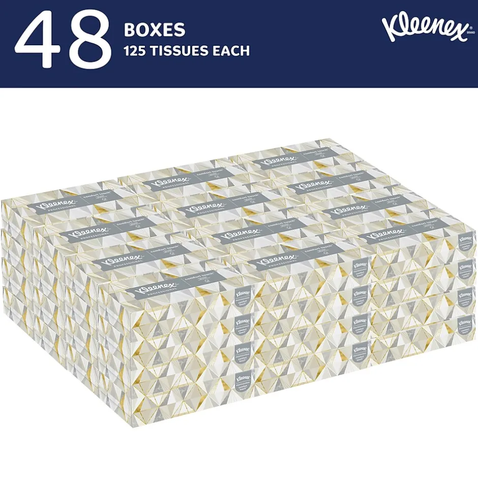 - 125 Tissues/Box, 48 Kleenex® Professional Facial Tissue Boxes/Case; 6,000 Tissues/Case; 2-Ply; White; Flat Facial Tissue Boxes for Business