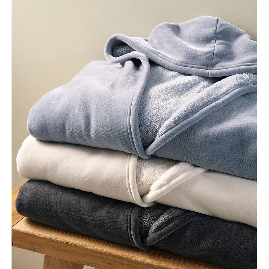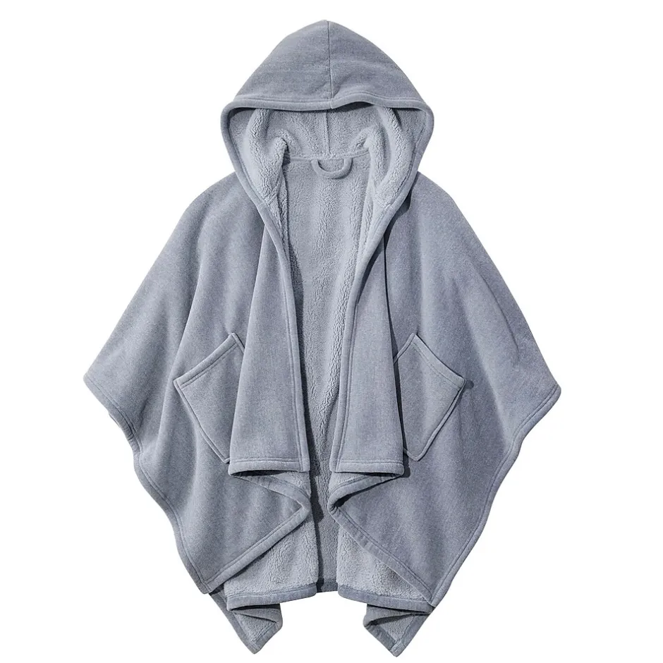 - The warmth of a throw and the comfort of a hooded wrap, all in one.