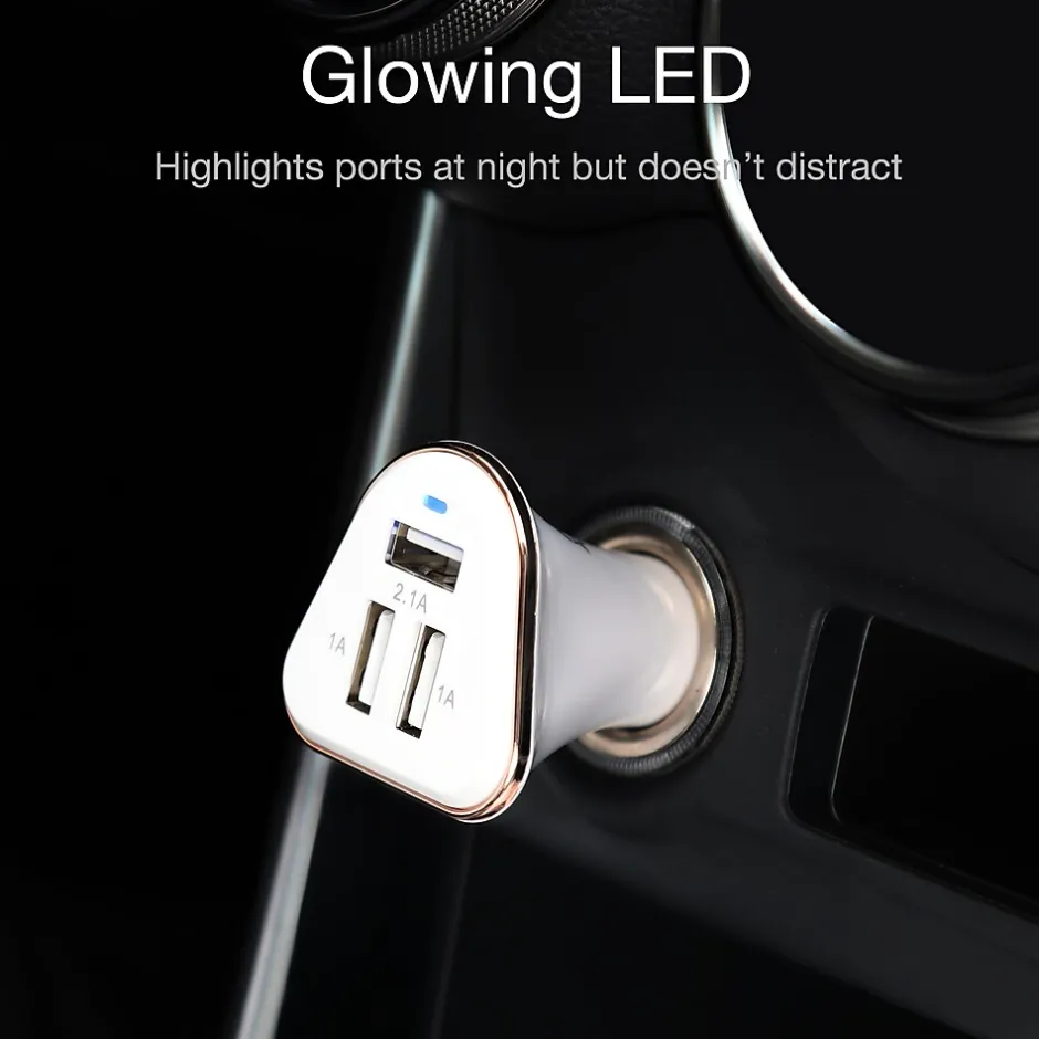 - 3-Port USB Car Charger: Charge up to 3 different USB powered devices at once