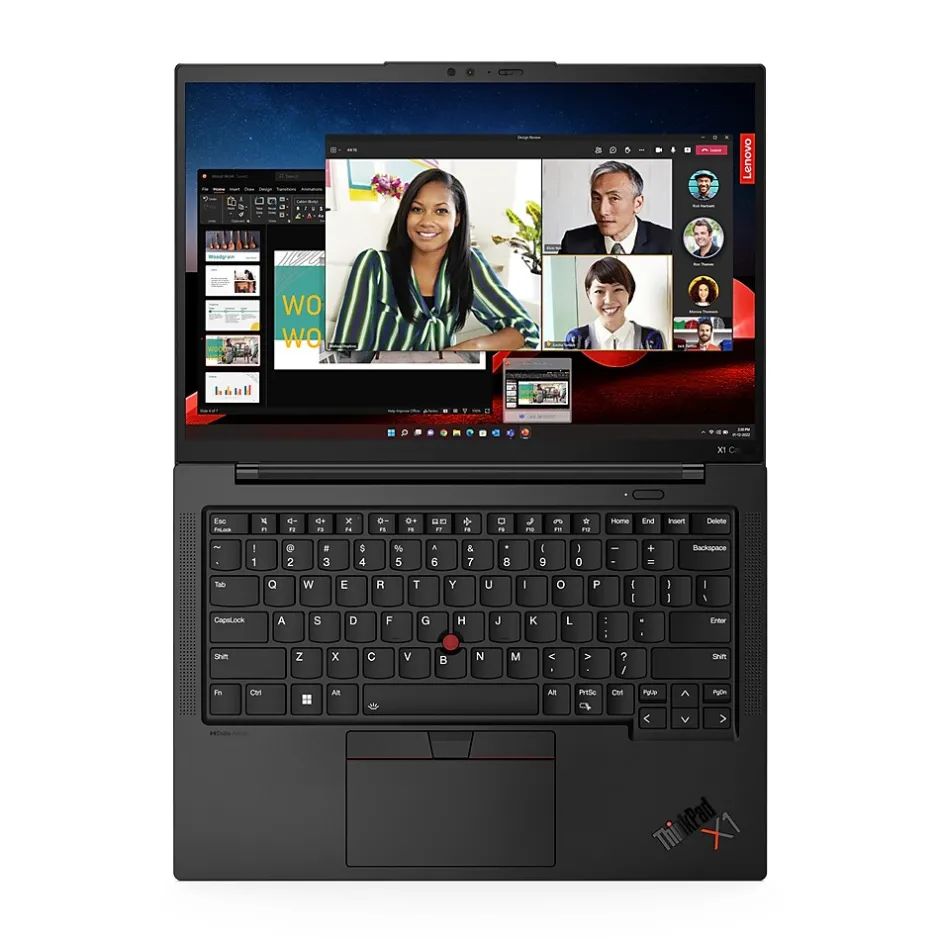 The legendary ThinkPad keyboard is designed for ergonomics and comfort—and part of that comfort means improved airflow. The underside of the keys facilitates air intake when in use. Combined with the dual fan and rear venting, the ThinkPad X1 Carbon Gen 11 notebook delivers improved thermals. So whether you’re powering through your day, or your night, or both, the ThinkPad X1 will stay as cool as you are. No matter how you look at it, the ThinkPad X1 Carbon Gen 11 laptop features stunning displays that meet your workday needs. Biometrics provide extra protection on the ThinkPad X1 Carbon Gen 11 system — with the fingerprint reader integrated with the power button.