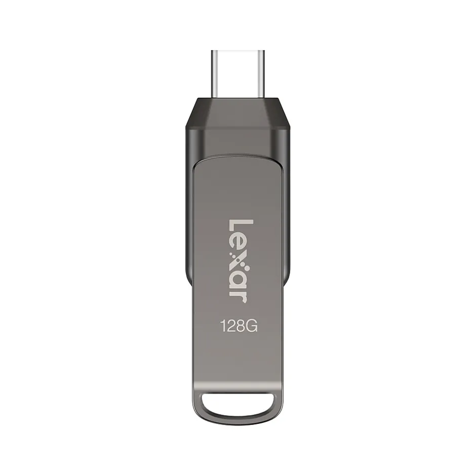 The Lexar JumpDrive D400 is a two-in-one flash drive that allows you to seamlessly transfer content between your USB Type-C and Type-A devices. Featuring a stylish metal casing and swivel design for added protection, this drive is as tough as it is fast, with transfer speeds up to 130MB/s.