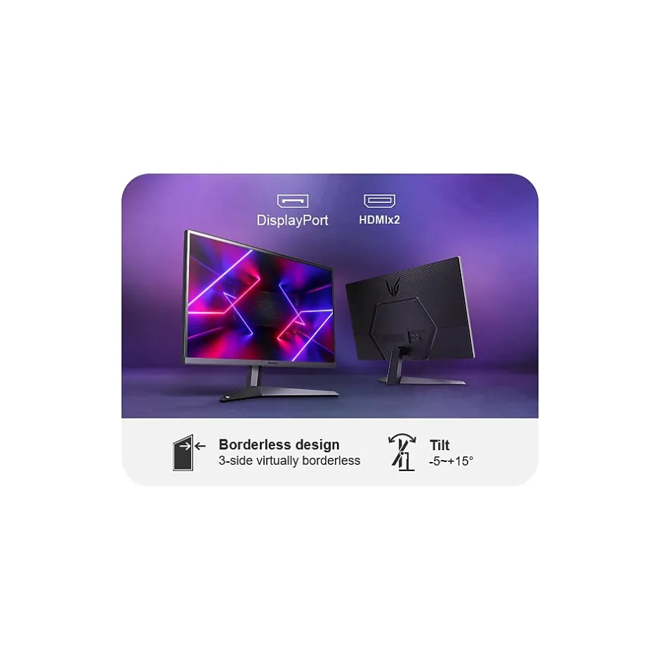 - Immerse yourself in the action with a sleek, three-side virtually borderless, ultra-thin design that maximizes your gaming setup. Equipped with two HDMI ports and DisplayPort connectivity, and featuring a tilt-adjustable display, you can customize your setup to match your gaming needs.