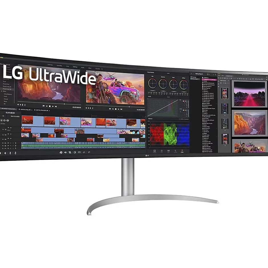 - Enjoy deeper blacks with the 49″ Nano IPS Dual QHD curved monitor