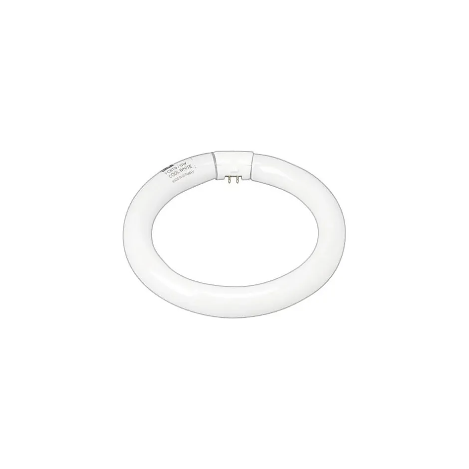 GE T-9 Circline fluorescent tube in cool white finish offers 1100 lumens of brightness and is suitable for use in basements as well as garages. 4-Pin Tube has G10q base and has 4100K color temperature.