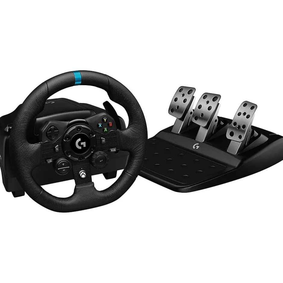 Logitech G923 is a high-performance racing wheel that revolutionizes the e-racing experience. Re-engineered to support a game-changing feedback system, G923 features TRUEFORCE, next-generation force feedback that dials into game physics to deliver higher fidelity realism. Feel the pistons pumping, the gravel crunching, and every shift, drift, and hairpin turn like never before. Aa progressive brake pedal recreates pressure-sensitive brake system, while a programmable dual-clutch system simulates a real race car launch assist in supported games. Get more traction with less smoke. A streamlined design features integrated controls for better performance, with a built-in 24-point selection dial, full console controls, and the classic RPM LED display for supported games.