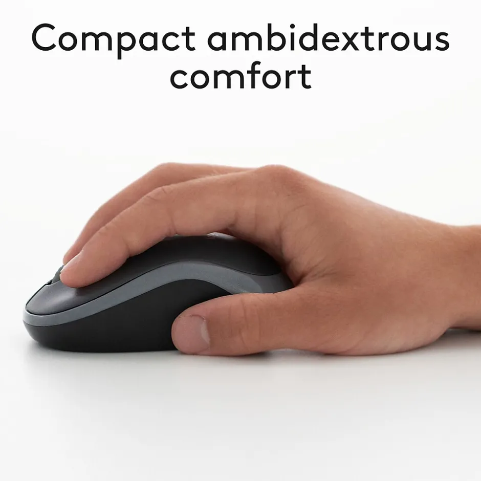 Type, scroll and click untethered with this Logitech wireless keyboard and compact mouse combo. A nano receiver connects both devices to your computer, eliminating the need for wires and cords, while the 10-meter range means you can control your computer from across the room. The full-size keyboard boasts a numeric keypad for fast data entry along with eight shortcut keys for faster typing. With its compact size, the mouse fits neatly in a travel bag or briefcase for use with a laptop. On/off switches on both devices help conserve battery power, making the long battery life even longer. With simple, low-profile designs, this Logitech wireless keyboard and compact mouse combo makes a handsome addition to your workstation.