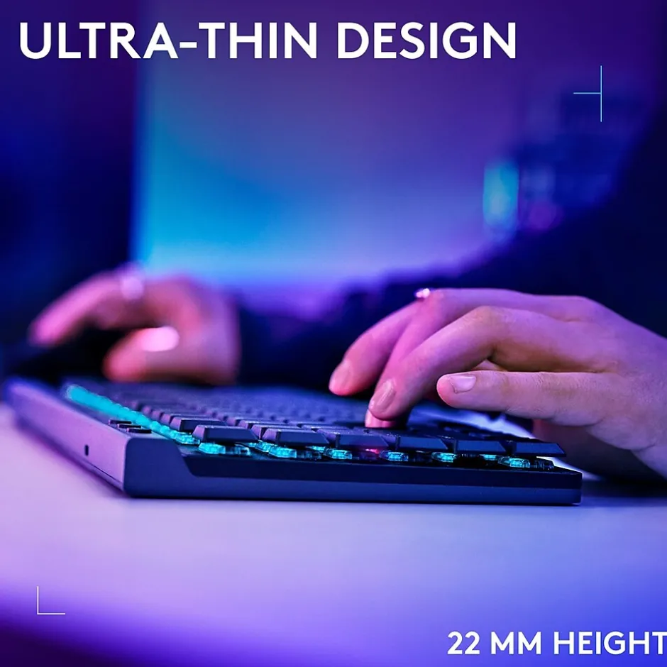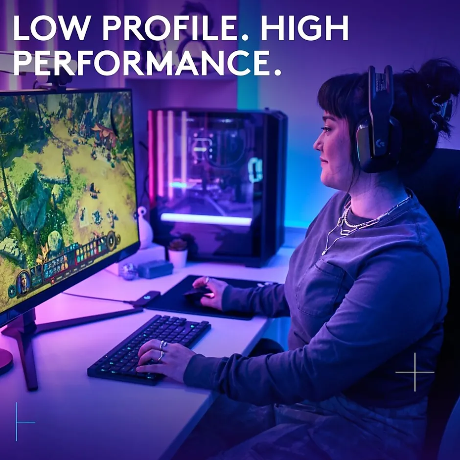 Ultra-thin 22 mm design meets high-performance engineering with Logitech G515 LIGHTSPEED TKL wireless gaming keyboard. Suit your way of play with tri-mode connectivity featuring LIGHTSPEED wireless, Bluetooth, and wired data mode. LIGHTSPEED wireless offers 1 ms report rate and 2:1 pairing with compatible mice using a single USB. Low-profile GL mechanical switches are factory-lubed for faster actuation, available in tactile and linear. Double-shot PBT keycaps and sound dampening layered construction offer durability and accuracy for a superior experience visually and in play. Customize play, create themes and sync other Logitech G gear with LIGHTSYNC RGB in G HUB. Map any key with KEYCONTROL for a personalized command center.