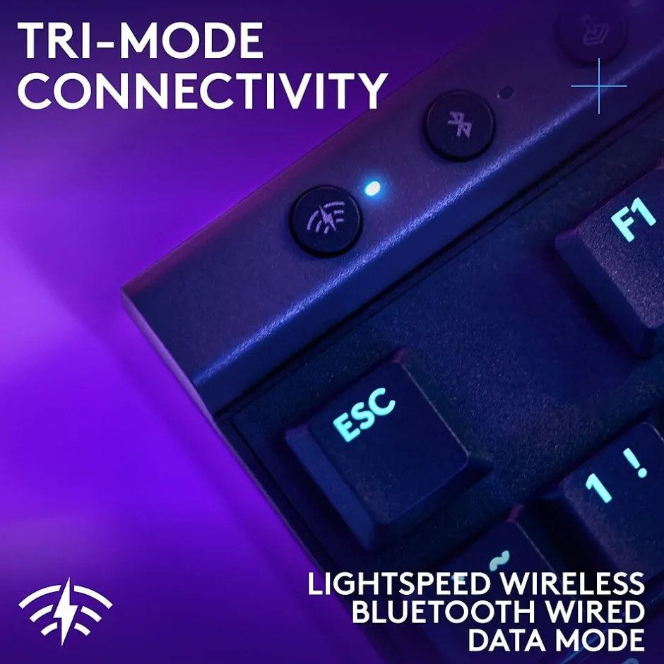 - Mechanical Gaming Keyboard: The Logitech G515 LIGHTSPEED TKL offers a slim profile and ten keyless design with tri-mode connectivity via LIGHTSPEED wireless, Bluetooth, or wired data transfer
