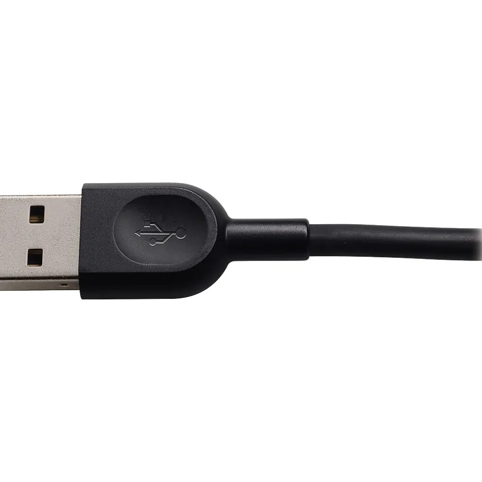 Keep computer-based calls and musical selections private with this headset. Leatherette ear pads and a padded headband keep you comfortable, and the integrated USB cable simplifies setup. This Logitech headset has a rotating noise-reducing microphone to reduce background sound during calls.