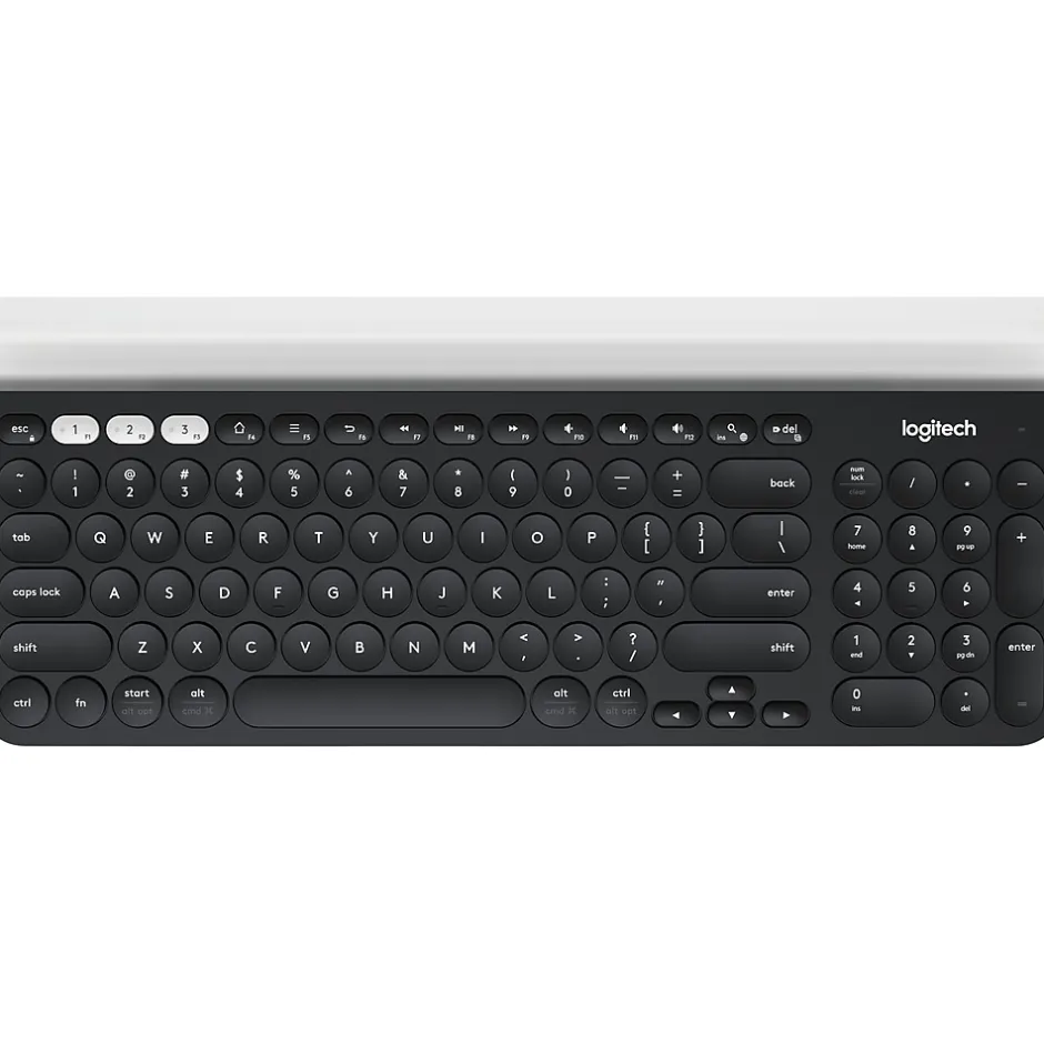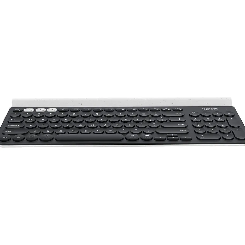 The Logitech K780 multi-device wireless keyboard is compatible with a wide range of devices and operating systems, simplifying your office’s tech situation. Its pre-installed batteries last up to 24 months for extended typing, allowing you to avoid wired use that limits your mobility. Full-size, easy-to-read concave keys make typing quick and comfortable, and a built-in tray sits in front of the keyboard to support phones and tablets in a comfortable upright position for convenient use.