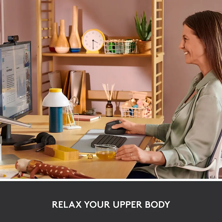 When the desk life gets you down, lift yourself up. A great fit for small to medium hands, the Logitech Lift Vertical Ergonomic mouse is crafted for comfort from first light to late night. Raise your hand into instant comfort with a soft rubber grip and cozy thumb rest. Realign into a more natural posture at 57 degrees. And feel focus flow from morning to night with productivity features designed to suit your working style. Connect easily to up to three devices via Bluetooth or Logi Bolt, and enjoy up to 2 years of battery life on a single AA battery.