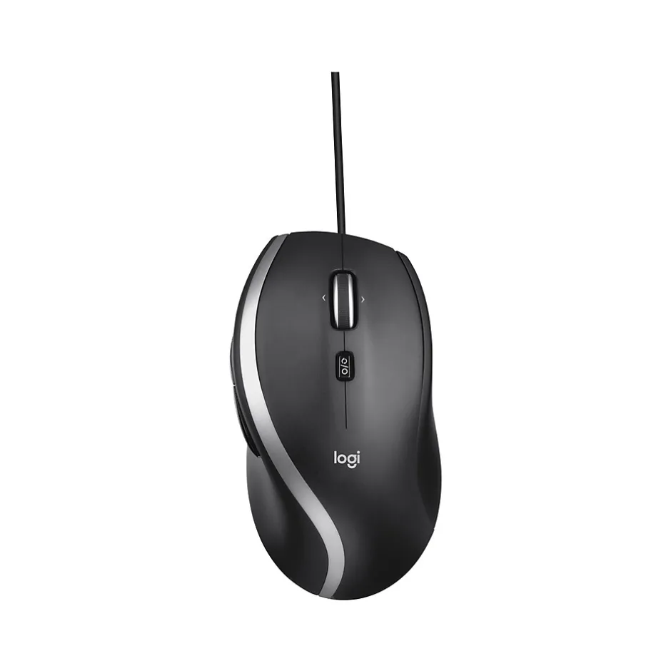 The Logitech advanced corded mouse M500s with hyper-fast scrolling for increased productivity. The nearly frictionless scroll wheel lets you fly through long documents and Web pages with a single flick. Or switch to the click-to-click mode for precise, line-by-line navigation of lists, slides, images, and menus. Now with 400-4000 adjustable DPI for fast and ultraprecise cursor control. Soft side grips and a contoured design give you more support and control. The seven customizable buttons let you move through Web pages and navigate your photo albums with ease. Plug-and-play USB works right out of the box.