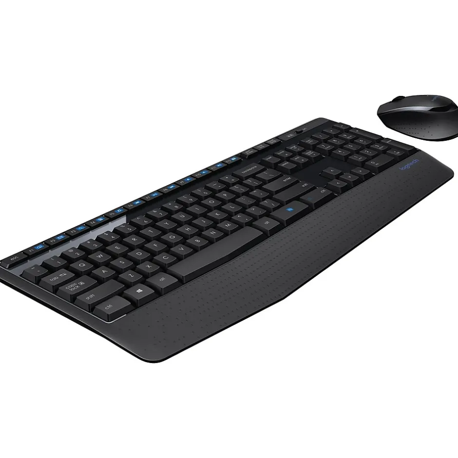 Increase productivity by controlling audio or video using special keys on this wireless combo. The four-year battery life for the keyboard and 18-month battery life for the mouse means working with the devices longer before replacing the batteries. For a better scrolling experience, the mouse has a wide wheel, and the keyboard lets you adjust its height, making it more comfortable while typing. The spill-resistant design prevents damage from liquids. Working with the mouse is comfortable to the wrist, thanks to the contoured grip. Equipped with advanced 2.4 GHz wireless connectivity, this Logitech keyboard and mouse delivers the speed and reliability of a corded connection.