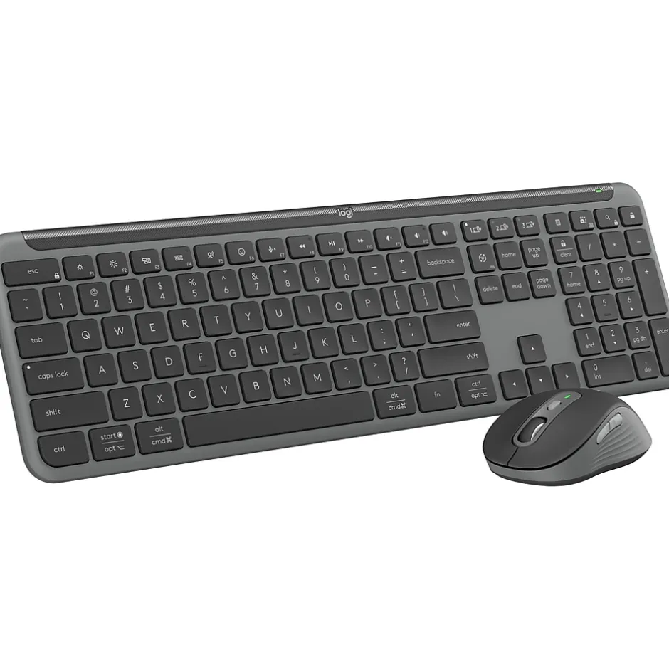 Type and click across computers effortlessly with the Logitech Signature slim keyboard and MK955 mouse made of recycled plastic. Make work-life magic with customization and shortcuts that keep you in control. Enjoy fast, precise scrolling and a familiar laptop-style keyboard feel that allows you to work even smarter with the Logi Options+ app’s custom shortcuts. Quiet typing and clicking gives you more focus and less disturbance to others. Connect wirelessly with Bluetooth or the included Logi Bolt USB receiver, and stay concentrated for longer with up to 36 months of battery life for the keyboard and 24 months for the mouse.