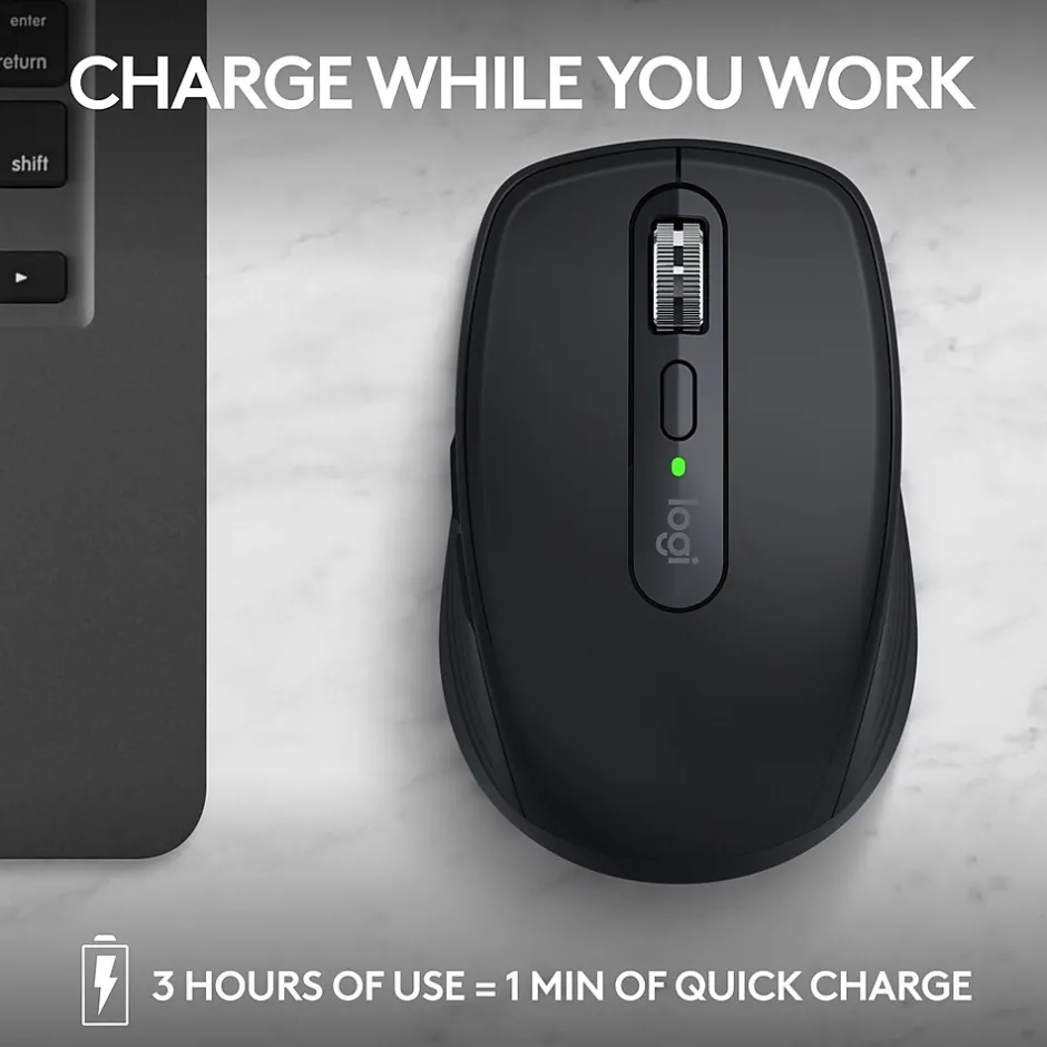 - Quiet Clicks keep the same satisfying feel but with less click noise (compared to MX Anywhere 3) for less distraction and more focus