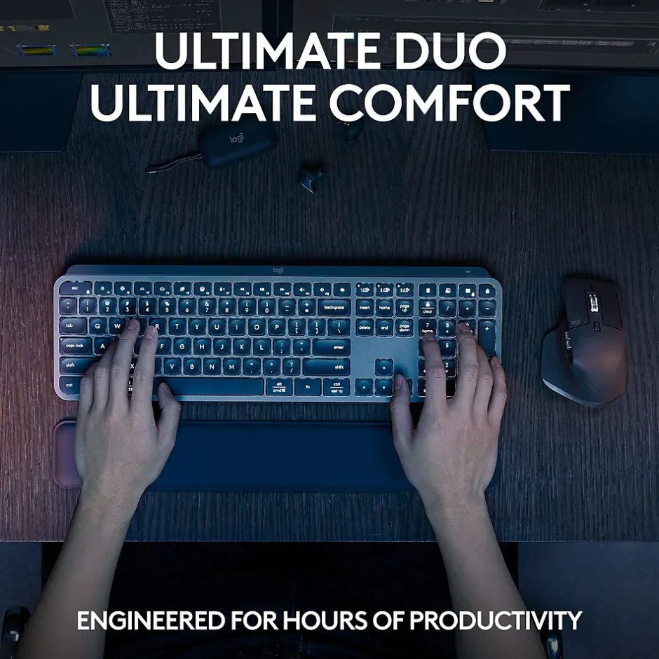 Introducing the Logitech MX Keys S combo, the ultimate set of precision tools engineered to get you in your flow for hours of comfortable productivity. The power of the fluid and fast precision typing of the MX Keys S keyboard is combined with the precise and fast scrolling experience of the MX Master 3S mouse. Dominate the workday and night with the MX Keys S and its time-saving Smart Actions and customizable smart illumination, while the MX Master 3S mouse takes your productivity further with Quiet Click buttons, ultrafast Magspeed scrolling, and an 8K dpi optical sensor that tracks even on glass.