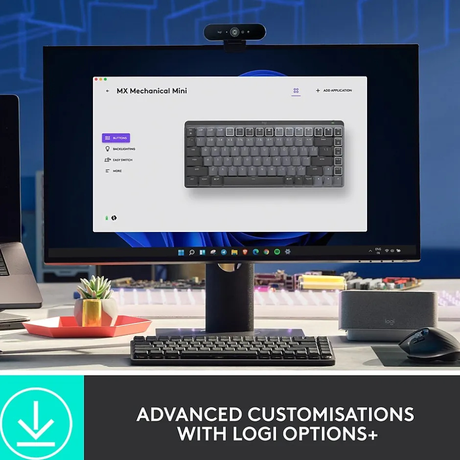 Introducing MX Mechanical Mini- a minimalist keyboard with extraordinary feel, precision, and performance. Low-profile mechanical typing delivers satisfying feedback in your choice of key switches – Tactile Quiet, Clicky, or Linear. MX Mechanical Mini is crafted for ergonomic comfort, with smart illumination and Easy-Switch – allowing you to connect up to 3 devices and stay in your flow for hours. Low-profile keys, more comfort: A keyboard layout designed for effortless precision, with a small, compact form factor and low-profile mechanical switches for better ergonomics. Smart illumination: Backlit keys light up the moment your hands approach the cordless keyboard and automatically adjust to suit changing lighting conditions. Faster workflow, more customization: Customize Fn keys, assign backlighting effects, enable Flow cross-computer, multi-device control, and more in the improved Logi Options+. Multi-device, multi-OS: Pair MX Mechanical Mini Bluetooth wireless keyboard with up to 3 devices on nearly any operating system via Bluetooth Low Energy or included Logi Bolt receiver. USB-C quick charging: MX Mechanical Mini keyboard stays powered up to 15 days on a full charge or up to 10 months with the backlighting turned off. MX Mechanical full-size: If you crunch numbers frequently, a full-size keyboard form factor with an integrated numpad is also available.