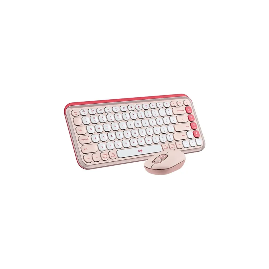 - Logitech POP ICON Wireless Keyboard Design is MINI with optical tracking mouse method. True color for this product is Rose and Off-White. Ideal for typing documents, browsing the web, and managing emails with ease. The customizable Action Keys allow quick access to frequently used applications and functions