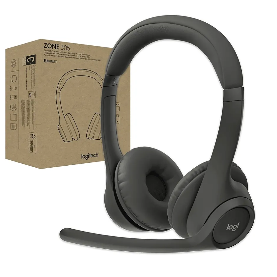 Zone 305 is a wireless headset certified for Zoom and Google Meet. It’s ideal for mass deployment to everyone who needs great audio and a reliable connection for calls or video meetings.Dual noise-canceling mics are positioned on the flip-to-mute boom for better voice capture. Custom algorithm suppresses background noises for clear audio on the far end.With up to 20 hours of battery life and 30-meter wireless range, Zone 305 offers the freedom to move around throughout the day. The lightweight design provides long-lasting comfort. You’ll love that its plastic parts are made with 55% PCR plastic and FSC™-certified packaging.Battery life may vary based on user and computing conditions.Open field line of sight. Wireless range may vary depending on the operating environment and computer setup.