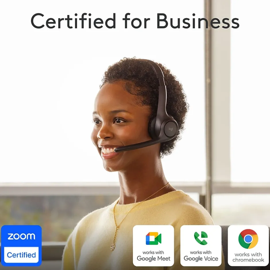 - Certified for Business: The Zone 305 wireless work headset with microphone is certified for Google Meet, Google Voice, Zoom, Works With Chromebook and popular video applications