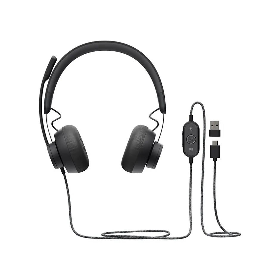 Designed for busy open workspaces, Zone Wired is a USB headset that delivers premium audio and reliable call clarity with advanced noise-canceling mic technology. Zone Wired is lightweight, stylish, and super comfortable for all-day use. Zone Wired works with common calling applications across most all platforms and operating systems. Noise-canceling dual mic technology accurately suppresses distracting sounds like keyboard clicks and nearby voices as close as 60 cm away for superbly clear calls and video meetings. The generously-sized 40mm drivers deliver full-bodied bass, crisp higher frequencies and incredibly low distortion for a satisfying overall sound whether you’re on a video call, listening to music, or toggling between the two. In-line controls keep call functions handy while USB-C and included USB-A adapter ensure plug-and-play compatibility. Durable, reliable and simple to use, Zone Wired delivers pure happiness for your ears.