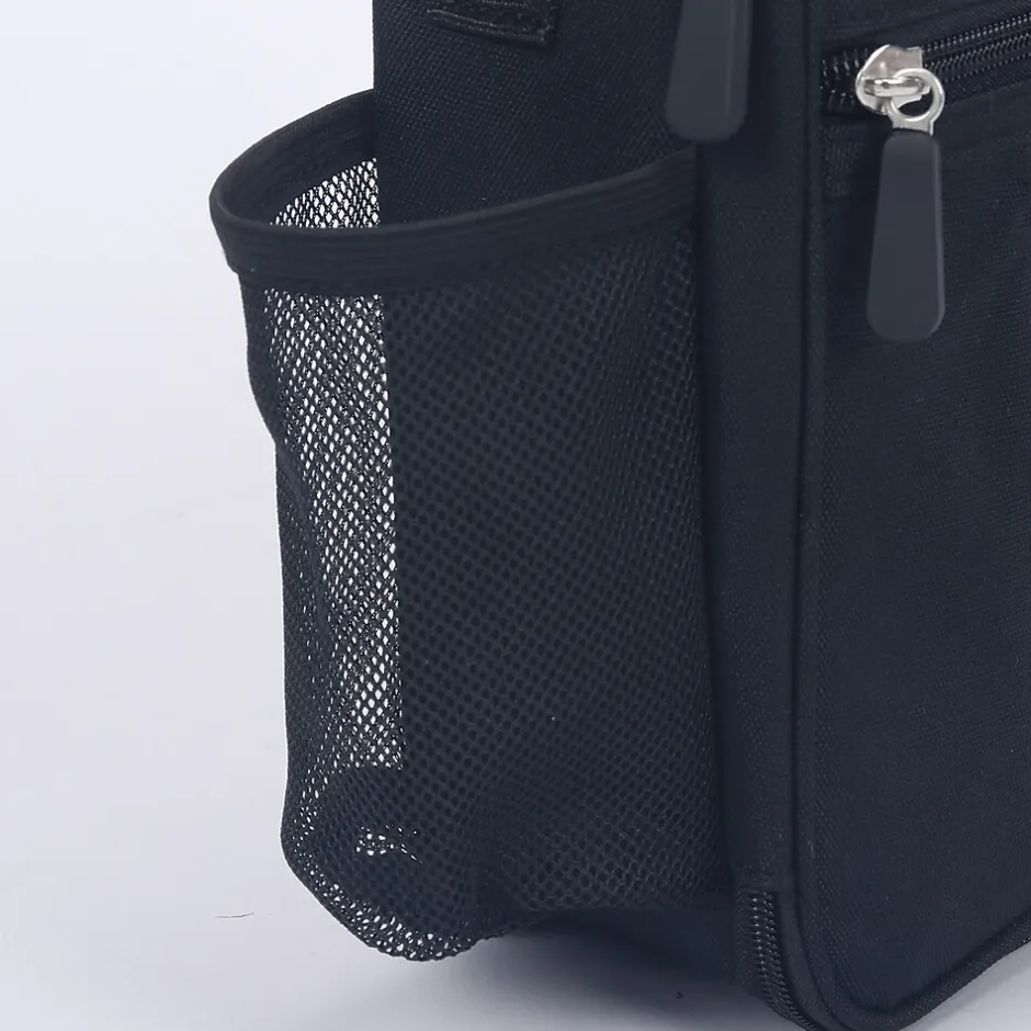 - This lunch box comes with an extra zipper pocket, a mesh side pocket, and a main compartment with a zipper closure and plenty of room to take a bite out of your day.