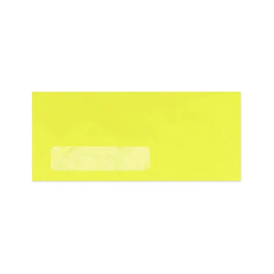 LUX® Size 10 Window envelope in electric yellow color features moistenable glue for safe sealing. Envelope featuring window saves duration as well as the expense of addressing separately and has 60 lbs paper weight, is sold as 50 per pack.