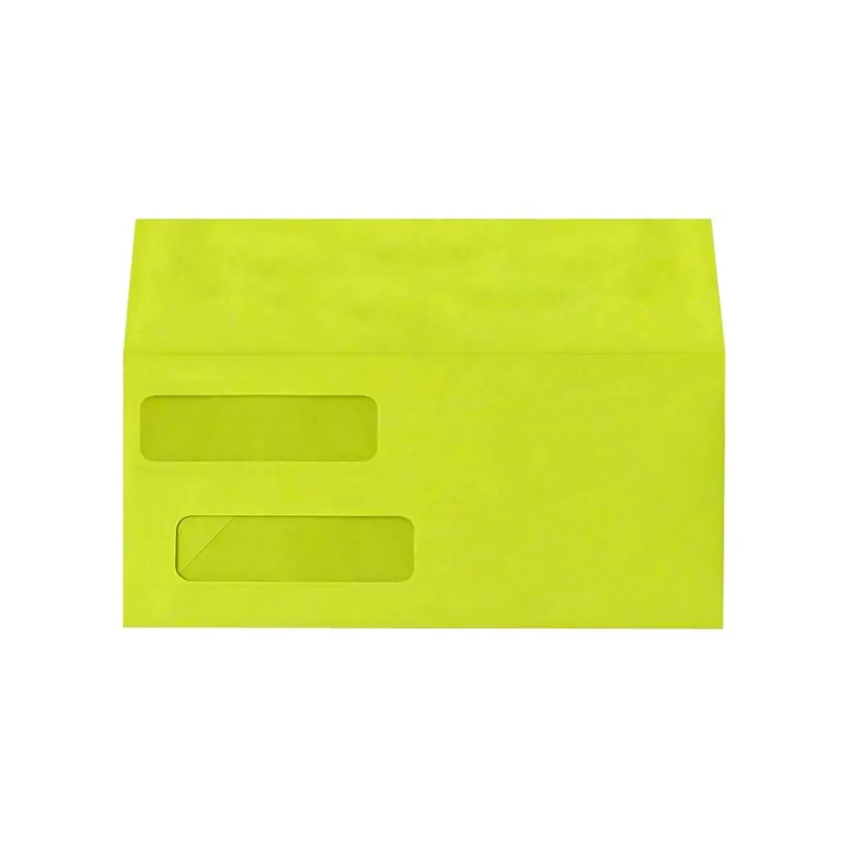 Lux 4.12 x 9.12 inch Wasabi Invoice Double Window Envelopes feature a square flap style and come in 1000/pack. They have two windows, one on the top is used for showing your company name and the one on the bottom is used for showing the address.