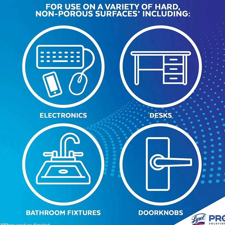 - Safe to use on high-touch germ hot spots, including electronics, doorknobs, handrails, faucets, phones, and keyboards.