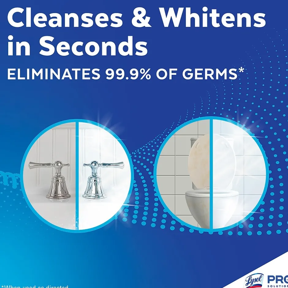 Optimize facility cleaning time with a foaming action formula that whitens while removing mold, mildew, and soap scum. Equip cleaning staff with a powerful tool against germs: Lysol® Multi-Purpose Cleaner Plus Bleach. Kill 99.9% of viruses and bacteria (including Norovirus and C. difficile) when used as directed on hard, non-porous surfaces. Enhance guest experiences with the multi-purpose cleaner and deodorizer that works on glazed tile and ceramic, sinks, counters, and high-touch bathroom surfaces. Arm cleaning staff with a non-abrasive formula that whitens on contact.