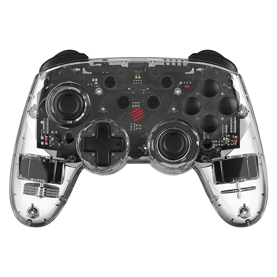 Compatible with Android, iOS, Switch, and Windows PC, the C.A.T. 9 Wireless Game Controller from MAD CATZ delivers true multi-device Bluetooth connectivity. 2 programmable buttons and turbo function give you the edge you need in any game. A dual vibration system, 6-axis motion sensor, and a transparent form factor with 8-color RGB illumination create a uniquely enhanced gaming experience. Play without limits across your favorite mobile devices as the C.A.T. 9 offers advanced multi-platform compatibility with Bluetooth 5.0. Get an edge with up to 4 customized macro profiles that can be changed on the fly—even in the heat of battle. Stay in the fight! Bluetooth 5.0 or USB-C wired mode allow you to stay connected across multiple devices. With its RGB-enhanced transparent crystal-shell form factor, the C.A.T. 9 delivers a vibrant gamer aesthetic unlike any other. The 6-axis motion sensor can automatically adjust the lighting effects for a uniquely immersive gaming experience. The dual-vibration system enhances your gaming experience on all your favorite mobile and gaming devices. With a rechargeable battery that supports up to 8 hours of playtime, you can play all your favorite games on almost any mobile platform like iOS, Android, Windows PC, and Switch. Even on the go, just use the quick-connect button to sync up with your mobile devices and start playing games instantly anywhere, anytime.