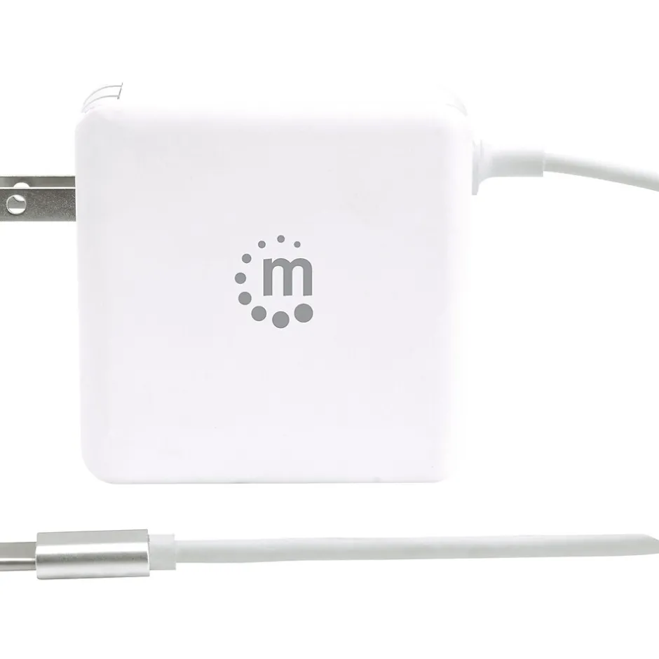 Enjoy complete charging power with this Manhattan 60-Watt Power Delivery Wall Charger with Built-in USB-C Cable in white. The charger’s attached USB-C cable uses Power Delivery (PD) technology to provide plenty of power to laptops and mobile phones, and the additional USB-A port can quickly charge any handheld device or tablet. It’s the ideal companion for travelers with its stylish, compact and ultra-modern design. It also intelligently safeguards itself and your devices with its short circuit, overvoltage, overcurrent and overtemperature protection functions.