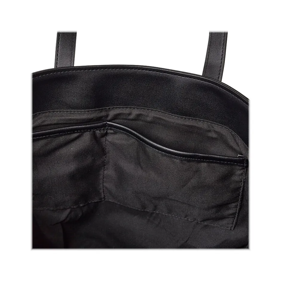 The Martha Stewart Deluxe tote is big enough to hold your belongings, and perfect for everyday use. Made of high-quality faux leather for long-lasting use. A padded laptop pocket fits a 13″ laptop in the center. Comes in black.