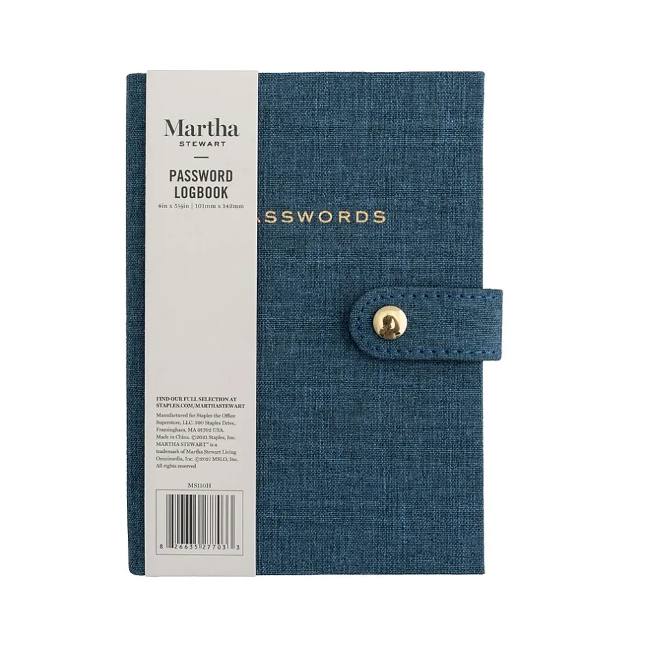 The Martha Stewart password book provides room to write URLs, usernames, passwords, and notes. Made of high-quality faux leather with a linen texture. Contains 144 ruled pages.
