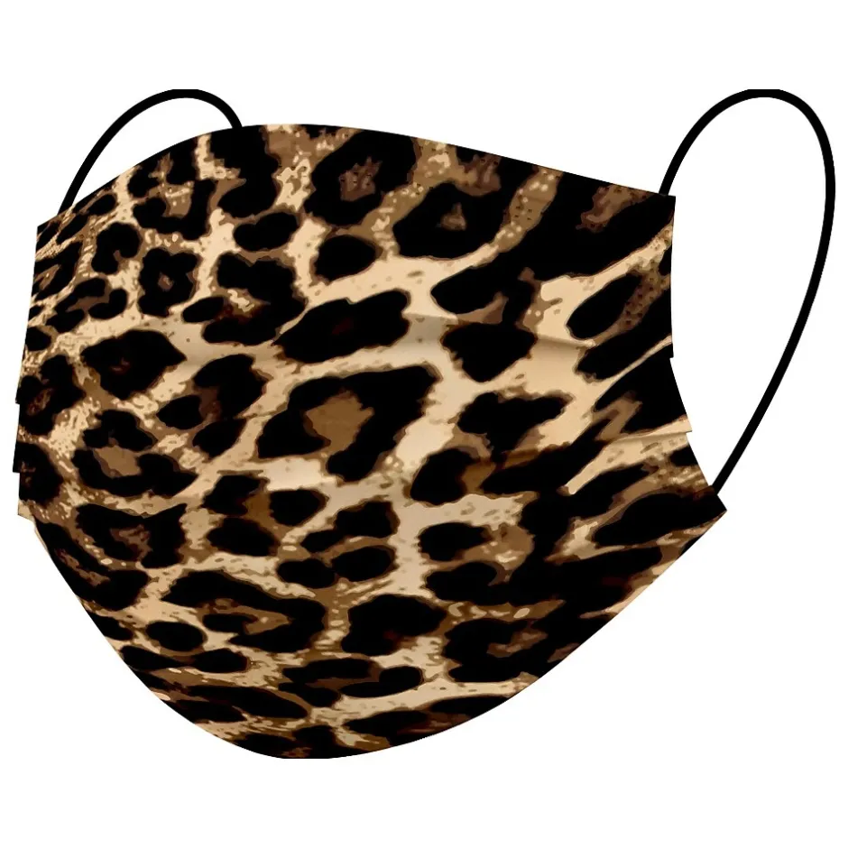- Adjustable wire runs along the top to serve as an adjustable nose clip; features a leopard design