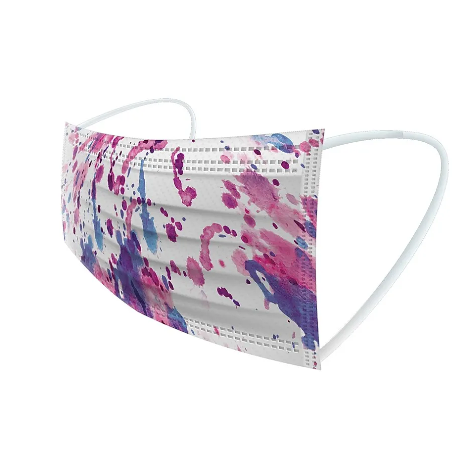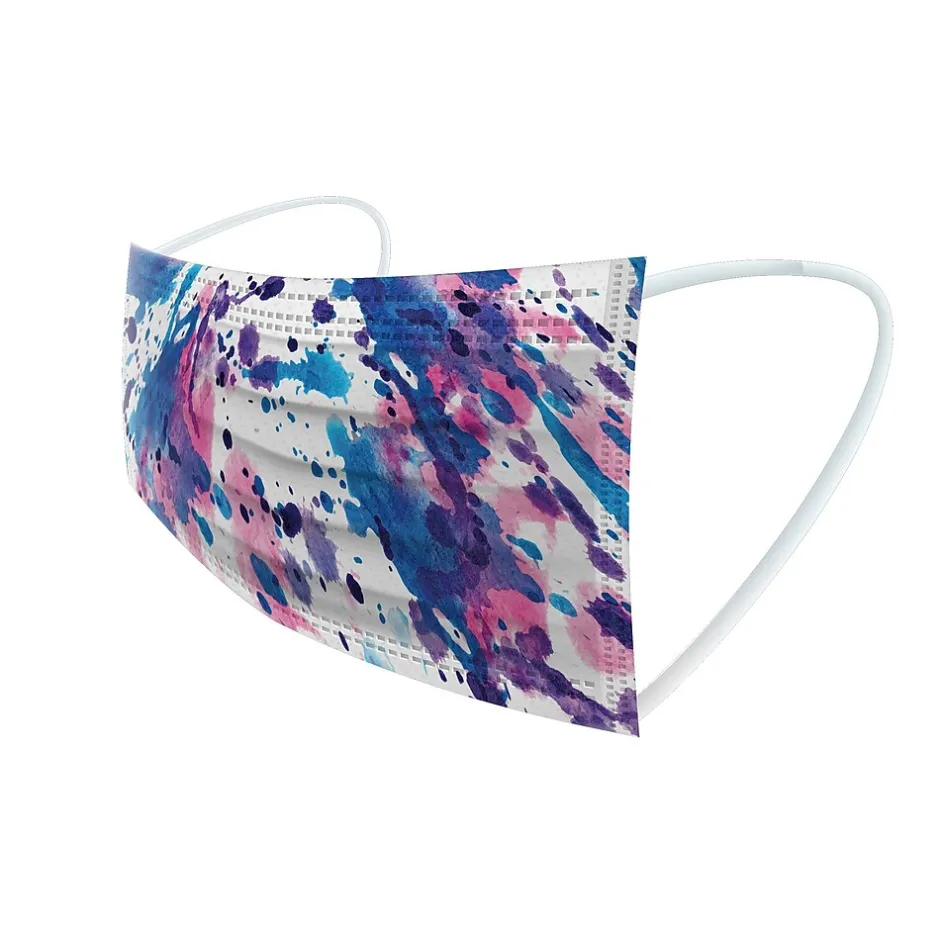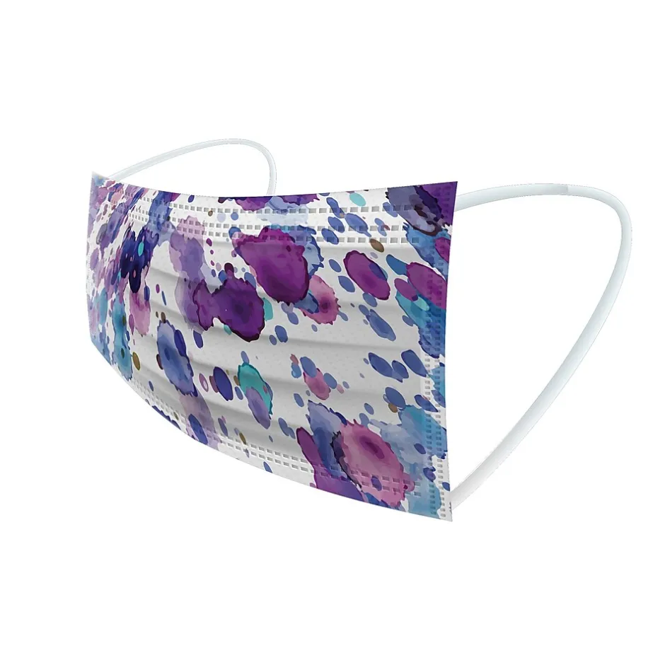 - Masks feature flat-fold shape with elastic ear loops to keep the mask secure; come multicolored in assorted watercolor designs (10 of each)