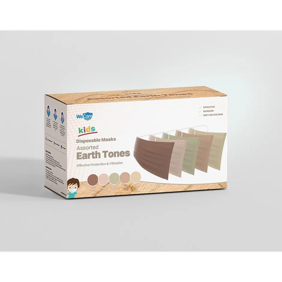 - Masks come in assorted earth tones and feature an adjustable metal wire that runs along the top as a nose clip
